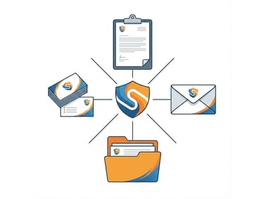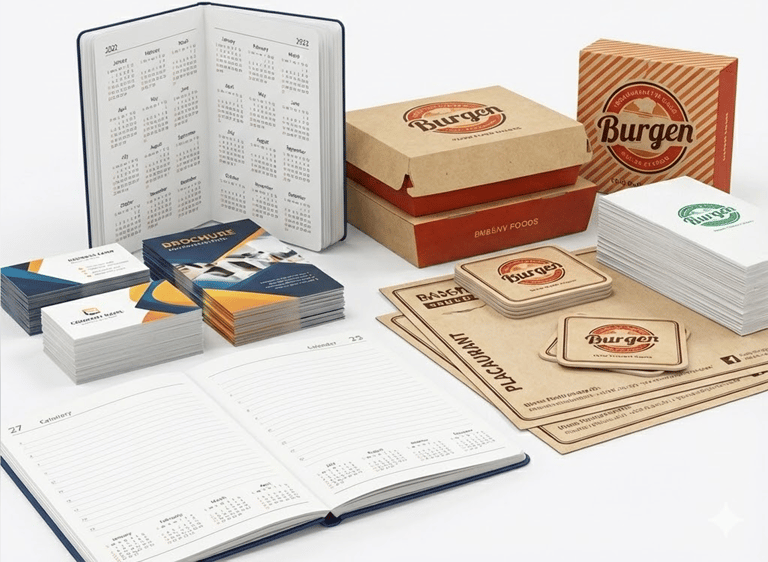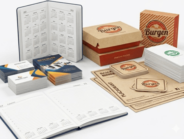 المطبوعات الورقية: كروت شخصية، بروشورات، فواتير، نتائج، ومفكرات.