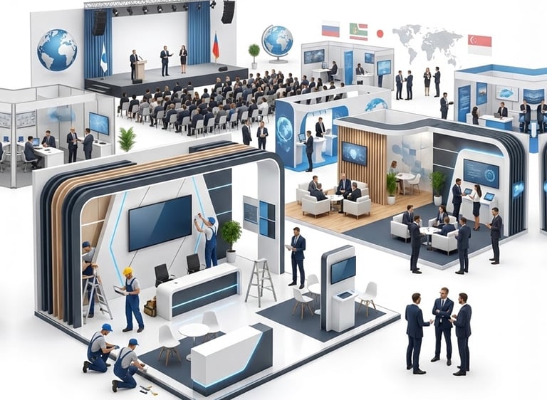 نقدم حلولاً شاملة لتجهيز أجنحة المعارض (Booths)، بدءاً من التصميم ثلاثي الأبعاد وحتى البناء والفرش، لضمان تمثيل مشرف لشركتك في الفعاليات المحلية والدولية.